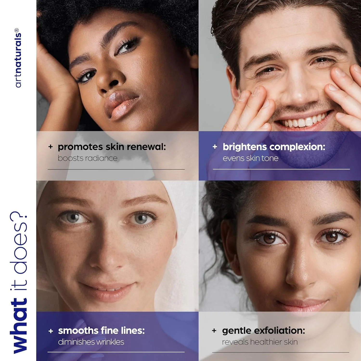 Turn back time to rediscover radiance! This exfoliating glycolic acid serum helps to reveal skin’s youthful glow. Artnaturals nourishing glycolic serum is a natural exfoliator that helps boost skin circulation and sloughs off dead skin cells to reveal skin’s natural radiance, improve surface texture, and promote a toned, clear complexion.