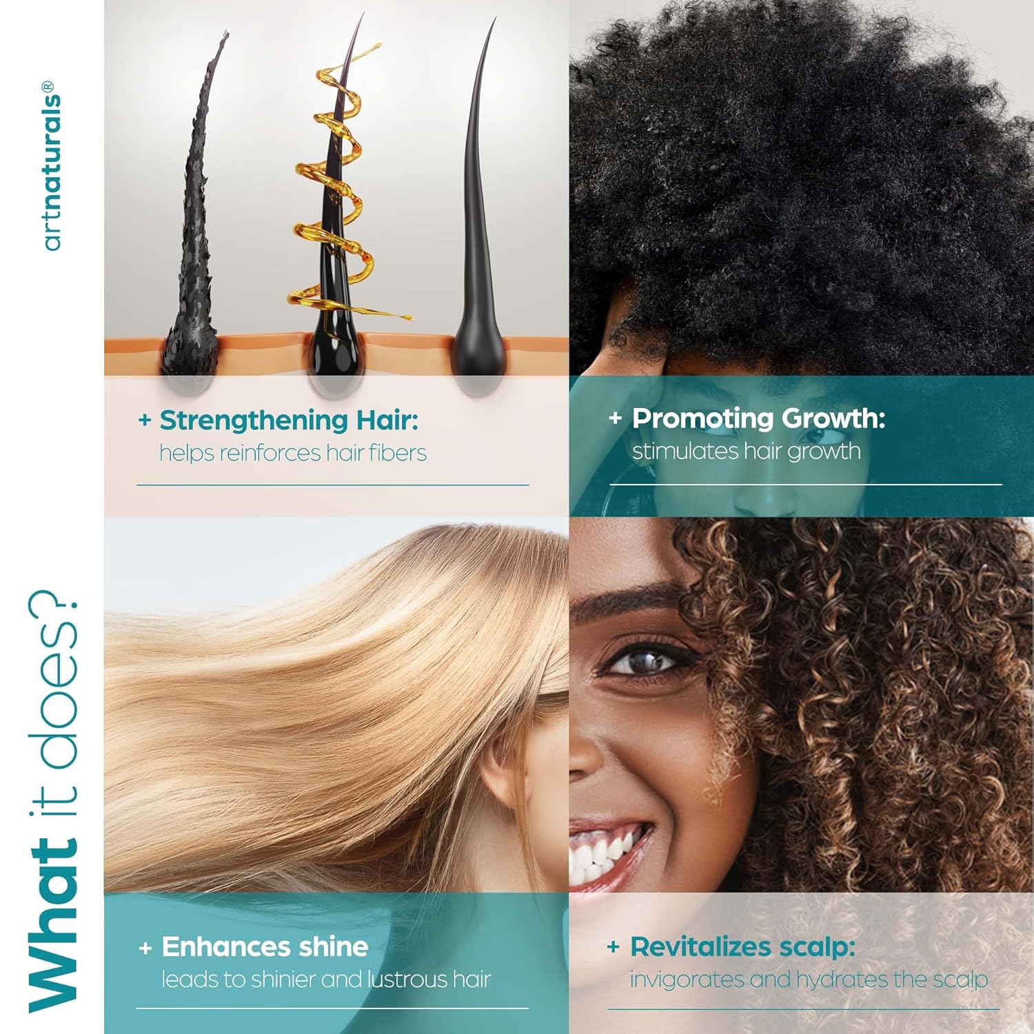 Biotin AND rice water-together in an easy-to-use shampoo? That’s what we said! artnaturals® Biotin and rice water shampoo is specially formulated to not only help stimulate hair growth with biotin, but also promotes smoothness, thickness and shine with the infusion of rice water. Gentle yet effective with a light, refreshing fragrance.